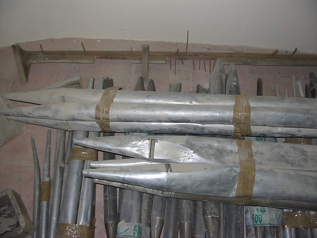Canne metalliche prima del restauro, con numerose ammaccature e vernice ad argentone sulla facciata.