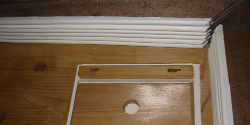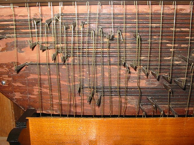 La tavola delle catenacciature dell'organo della Chiesa di San Domenico a Molfetta: il legno, seriamente tarlato, è stato consolidato con araldite, resina epossidica dalle caratteristiche fisiche simili al legno.