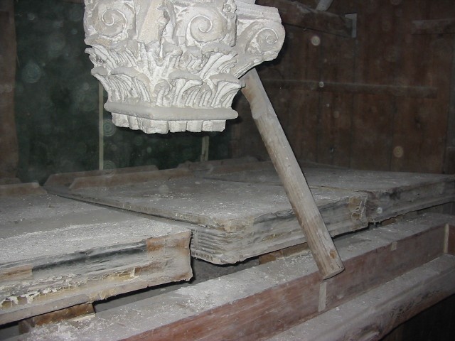 Il fondo della segreta dei somieri maestro e di basseria era foderato con carta da musica: diversi frammenti di cantate per voce sola e basso continuo cifrato. Si è provveduto al distacco e recupero dei fogli.