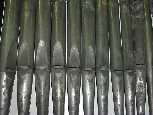 Grave stato di ossidazione delle canne di facciata in stagno, dovuta alla presenza di impurità ferrose nella lega metallica.