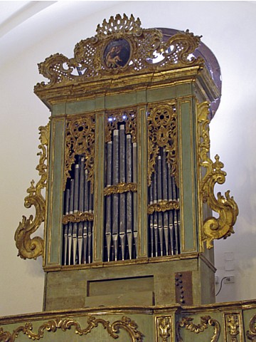 L'attribuzione è confermata, oltre che da indagine d'archivio, da un'iscrizione sul primo tasto e dalla caratteristica forma ad ogiva moresca capovolta dei labbri inferiori delle canne di facciata costantemente seguita dal Rubino.