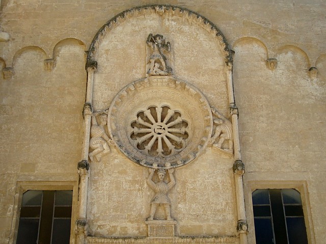 La chiesa di S. Domenico di Matera risale, nel suo impianto originale, al sec. XIII; allo stato duecentesco si presenta la facciata esterna, arricchita da un rosone raffigurante una Ruota della Fortuna.