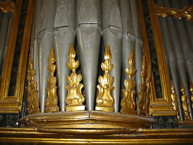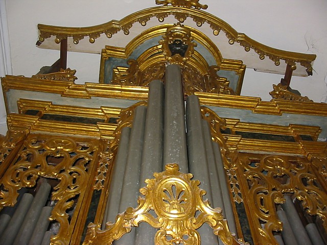Collocato in cantoria sulla porta principale e racchiuso in cassa lignea intagliata e dorata