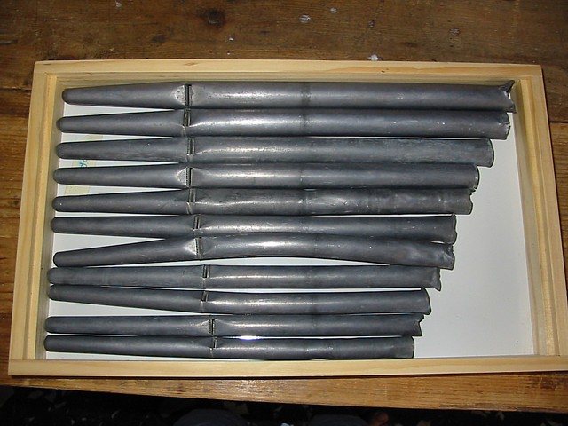A uno strumento preesistente (forse sec. XVIII) sembrerebbero appartenere invece i due mantici a cuneo, ancora provvisti di chiodi quadrangolari forgiati a mano.